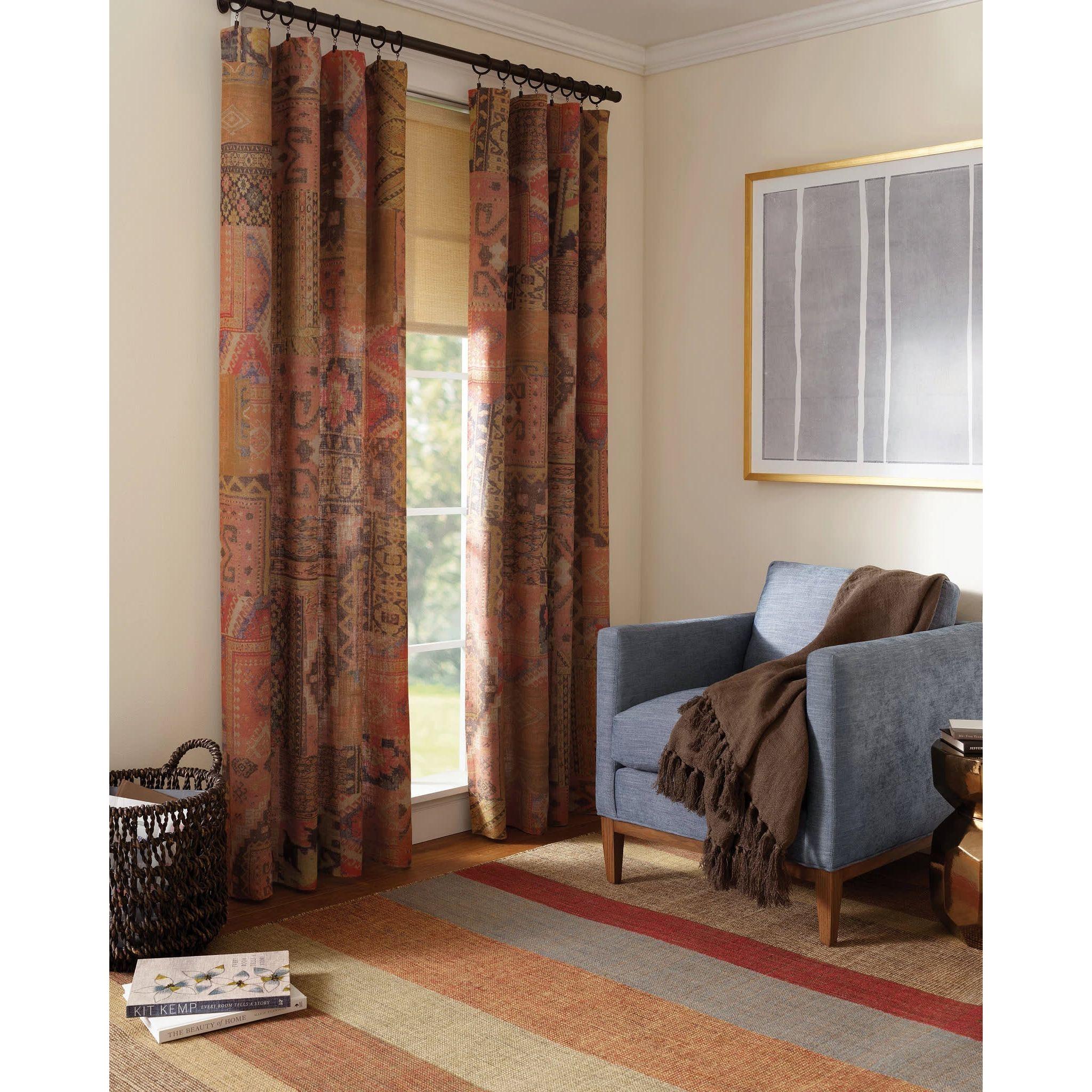 Our Anatolia curtain panel is a glorious pastiche of richly colored oriental rug patterns rendered in a lighter, modern palette to sooth the eye, mind, and spirit. Digitally printed onto our best selling, thick luxurious, rustic linen to capture all the beauty and nuance of the ancient and muted coloration, then washed and tumbled to sublime soft perfection. Anatolia is for those who yearn for a romantic, worldly and exotic element to mix in with their eclectic style. Comes readily sewn with pocket rod and loops for easy installation and a casually effortless ethos, or converts to ring-top style with curtain loop rings and drapery hooks available separately.