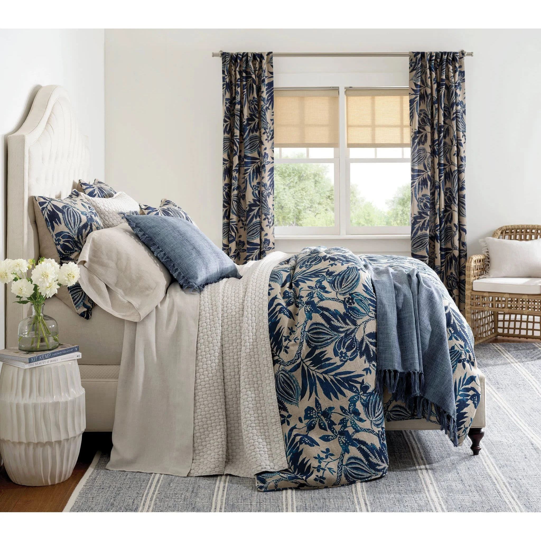 Inspired by Colonial Era woodcuts, this dramatic curtain panel features large-scale inky black fronds, buds, and pods digitally printed onto rustic natural linen, then washed and tumbled to sublime perfection. Pre-sewn with rod pockets and loops for casual effortlessness and easy installation, or convert to ring-top style with curtain loop rings and drapery hooks.