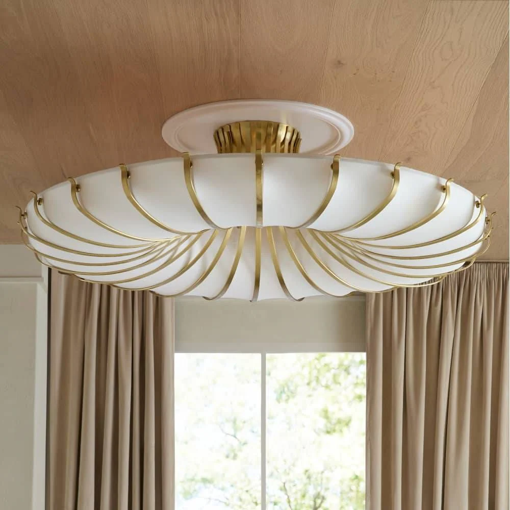 ivory faux vellum, this impactful fixture blends the best of flora and fauna