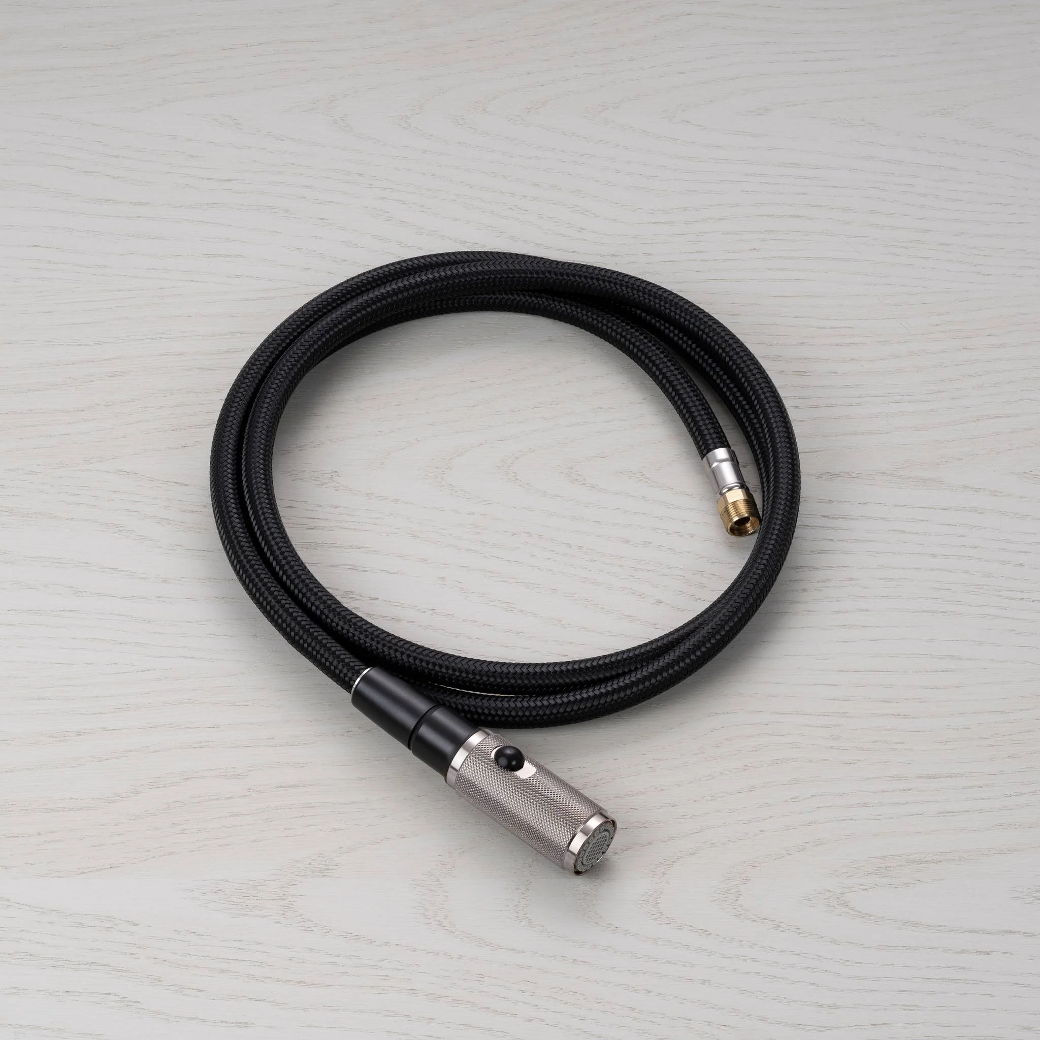 An upgrade kit that adds a dual-spray function to your existing Buster + Punch faucet with pull-out, letting you toggle between aerated or needle spray. For use with a Buster + Punch pull-out faucet. Features a pull-out nozzle with our signature diamond-cut cross knurling. Available in steel, gun metal and black finishes.