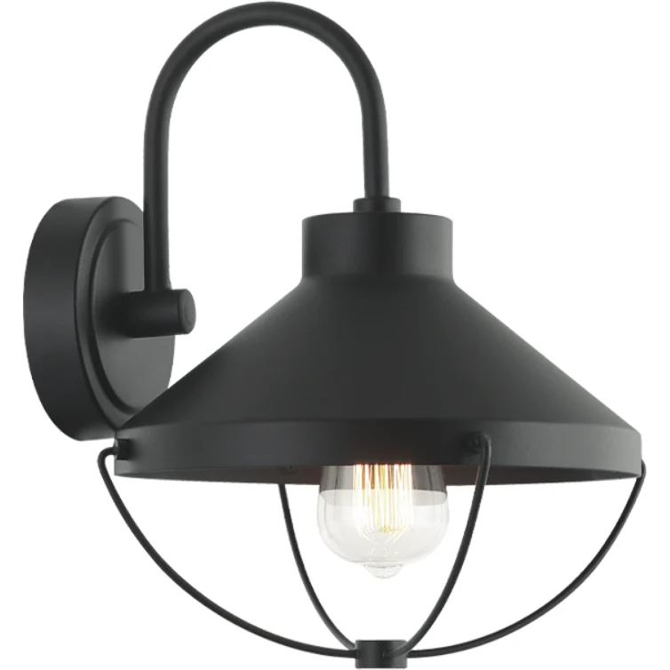 Fable is a rustic outdoor wall sconce series. The metal shade with caged detailing, exposing the bulb, provides a fresh farmhouse look. The rounded arm that attaches to the canopy adds a simple elegance. Available in 2 sizes in Matte Black.