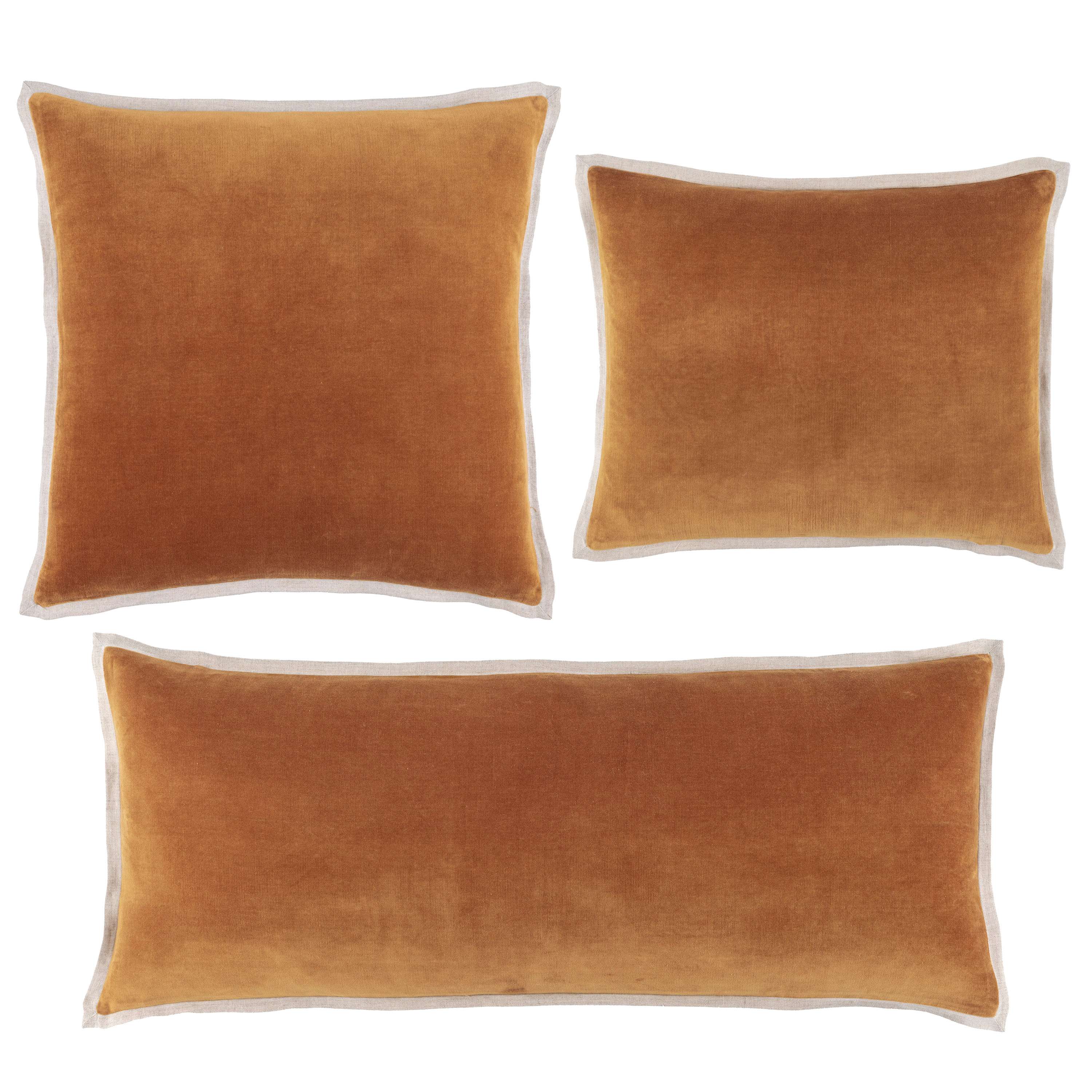Reflect the essence of unparalleled luxury and impeccable taste. Cotton velveteen in an expressive range of mineral-rich shades is backed with dyed-to-match linen and edged with a grounding natural linen flange. Reach plush perfection with the meticulous craftsmanship and attention to detail of this sublimely stunning throw pillow. Designed for us by Marie Flanigan, an award-winning interior designer and principal of Marie Flanigan Interiors, to reflect her signature style of timeless elegance and innovative simplicity.