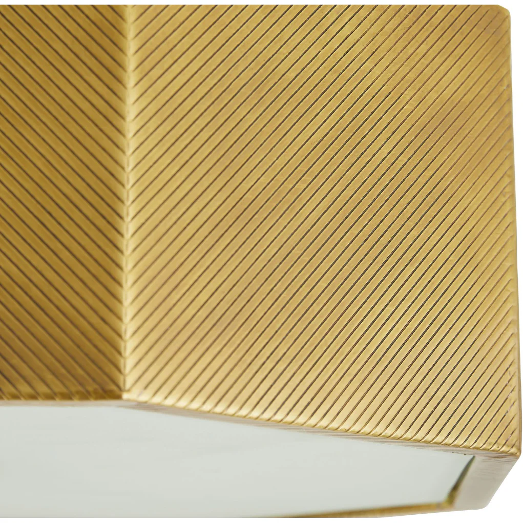 The hexagonal shape of this semi-flush mount draws the eye with its multi-faceted fac��ade. Crafted of iron, this fixture features an antique brass exterior and polished brass interior for an extra element of shine. Diagonal detailing adds texture to the side panels and canopy to create a look that is both edgy and elegant. A frosted glass diffuser helps to disguise two bulbs, while simultaneously working to soften the glow. Finish will vary.