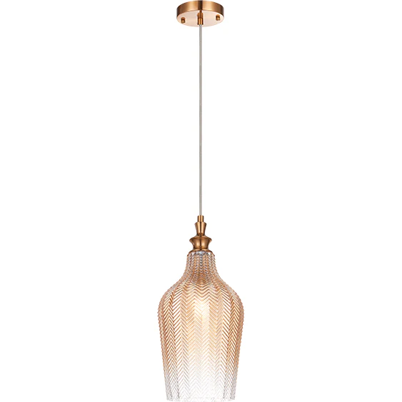 The Renity series features an elegant design of chevron textured glass, matched with either Aged Gold Brass or Smoke finish. These sophisticated pendants will add charm to any space. Available in 2 glass shapes.